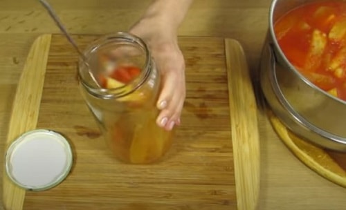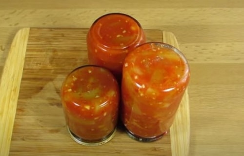 З томатною заливкою салат виходить більш насиченим смаком, м’якше. Та й клопоту під час заготівлі поменше.