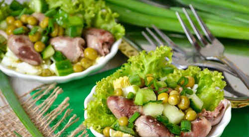 Салати з курячих сердечок, завдяки специфічному смак субпродукту, не схожі на інші. Рецепти приготування страв з корисного продукту невигадливі і дуже прості. Але салат завжди виходить дуже смачним і оригінальним. Подавши на святковий стіл незвичайну закуску, ви відразу виростете в очах гостей і придбаєте звання досвідченої в кулінарії господині. Вони сытны, тому чудово підійдуть для вечері.