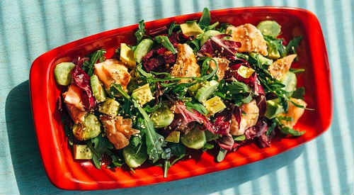 Як приготувати салат з запеченим лососем