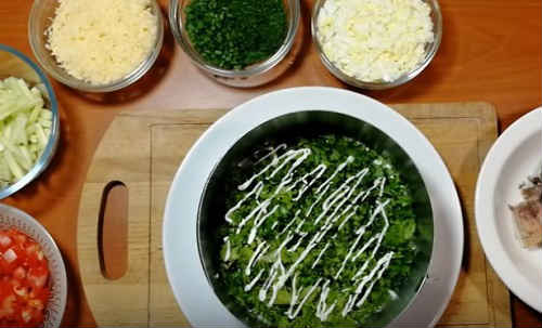- Слідом розподіліть кубики перцю, знову зробіть майонезну заливку.