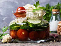 Смачний овочевий салат «Асорті» з кольоровою капустою на зиму
