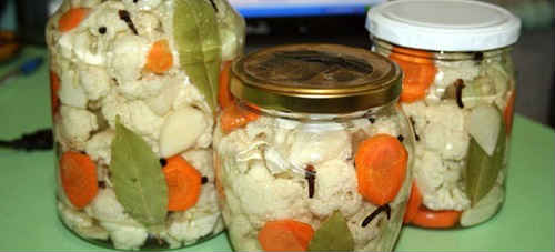 Салати з кольорової капусти, законсервовані на зиму, викликають гордість у господинь. Яскраві, ошатні баночки, які стоять в ряд на полицях, виглядають неймовірно апетитно. Смачні закуски урізноманітнюють меню зимових вечерь, прикрасять святковий стіл. Салат чудово поєднується з м’ясними, рибними стравами, відмінно йдуть на гарнір. У консервації капуста дружить з масою інших овочів – баклажанами, солодким перцем, квасолею, цибулею, огірками, морквою, помідорами, брокколі. Навіть назви заготовок викликають апетит: Фазенда, Пальчики оближеш, Делікатес, по-корейськи.