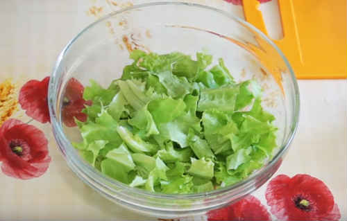 Порада: закуска буде смачніше, якщо листя салату порвати руками, а не нарізати ножем. Якщо листочки трохи зів’яли, опустіть їх в миску з крижаною водою. Через 15-20 хвилин вони знову стануть міцними і хрусткими.