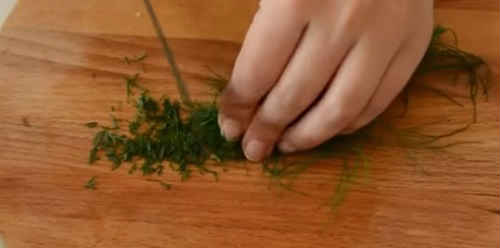 - Покришіть зубчики часнику, кріп, введіть в салат.