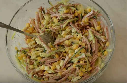 Навіть якщо у холодильнику миша повісилася, продукти для цього салату знайдуться практично завжди. Головне, мати підлозі шматочок копченої ковбаски.