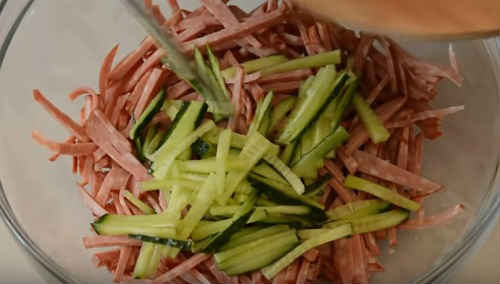 Салат Соломка з ковбасою і огірками – простий рецепт