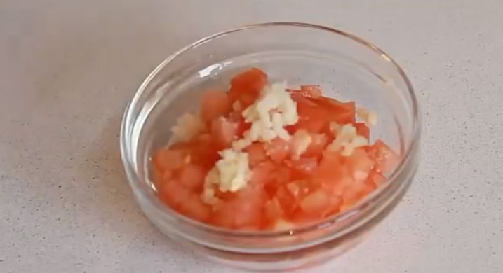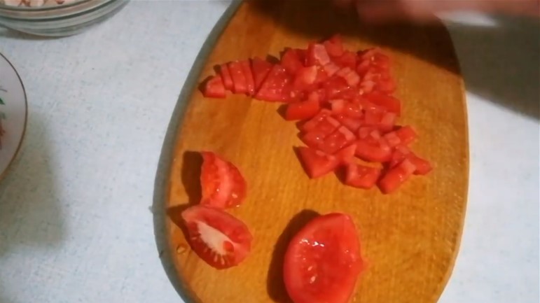 1. Помідори потрібно порізати часточками і прибрати з них соковиту частина (її можна використовувати інші страви). М’якоть порізати дрібним кубиком.