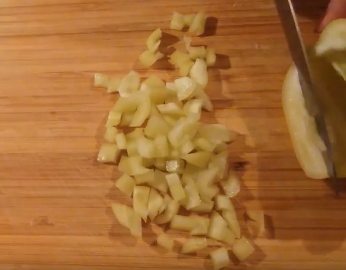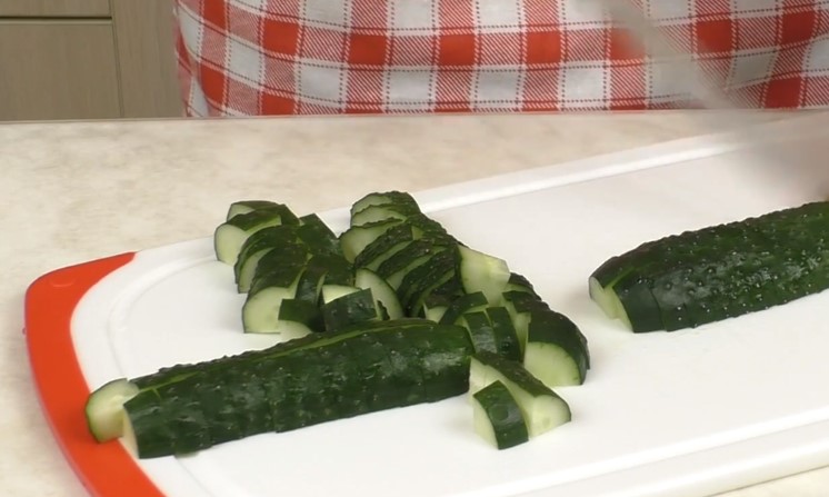 4. Свіжий огірок ріжемо часточками або кубиками.