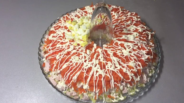 3. Третім шаром — морква, також трохи присаливаем і промазуємо майонезом.