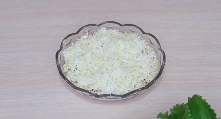 5. Одне яйце натерти на дрібній тертці і зробити його наступним шаром.