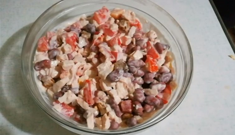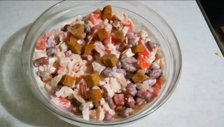 Салат з червоною квасолею, копченою куркою і сухариками — дуже смачна закуска