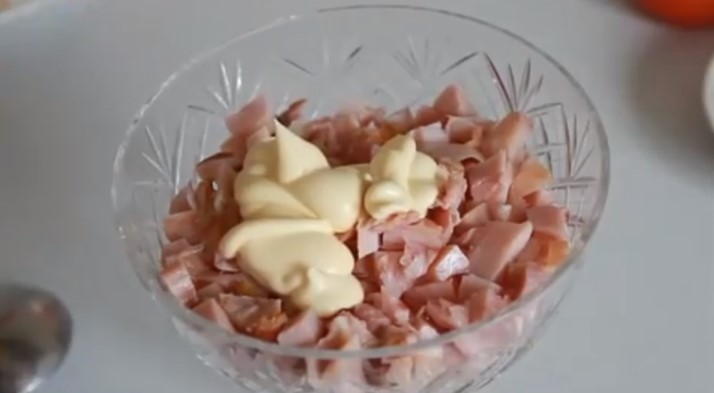 2. Дно салатника змастити майонезом. Зазвичай салати внизу сухі, цей прийом дозволяє уникнути дану проблему.