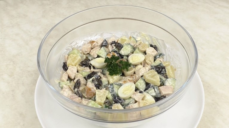 Салат «Тіффані» з виноградом, чорносливом і копченої птахом