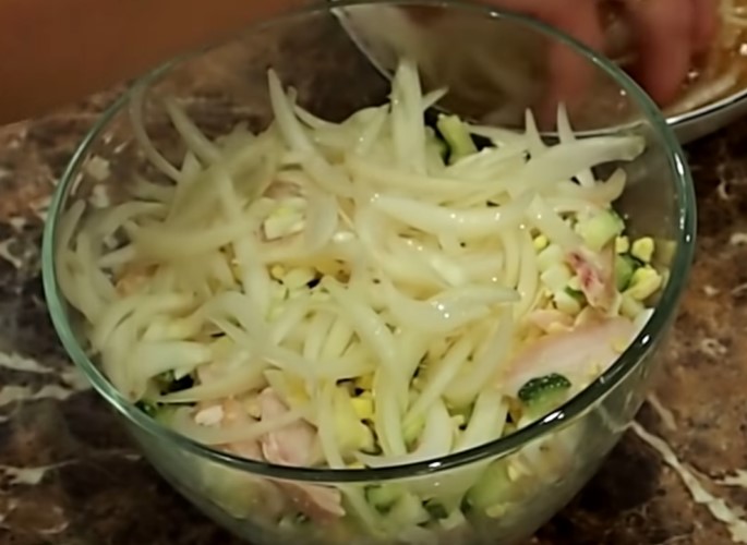 Готуємо простий салат з копченим курячим філе, кукурудзою і свіжим огірком (відео-рецепт)