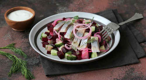 Салат з копченої оселедця з буряком і майонезом