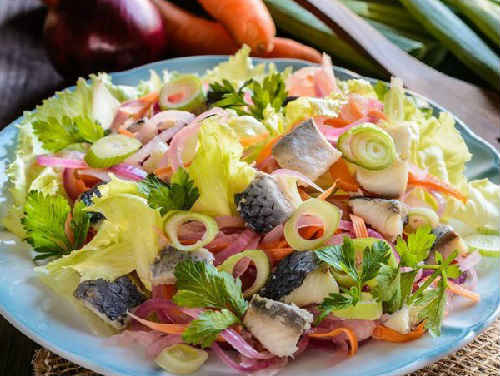 Салат з копченою оселедцем і овочами без майонезу