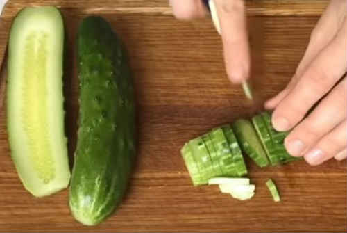 Покришіть огірки соломкою, як на фото.