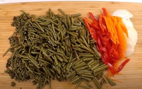 Свіжий папороть перед приготуванням необхідно вимочити, щоб позбутися від гірчинки. Для цього залийте його водою на 3 години, і не забувайте періодично його змінювати.