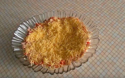 Далі зробіть сирний шар, тут майонез не потрібен.