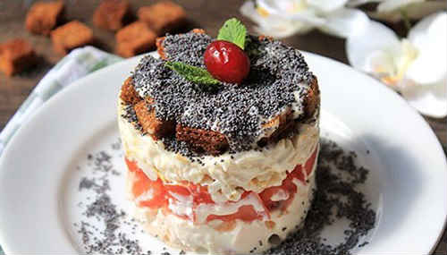 Щедро посипте верх маком. Прикраса закуски можна доповнити червоними ягідками журавлини або смородини. Любите зелень – розкидайте по периметру. І ловіть кайф!