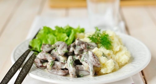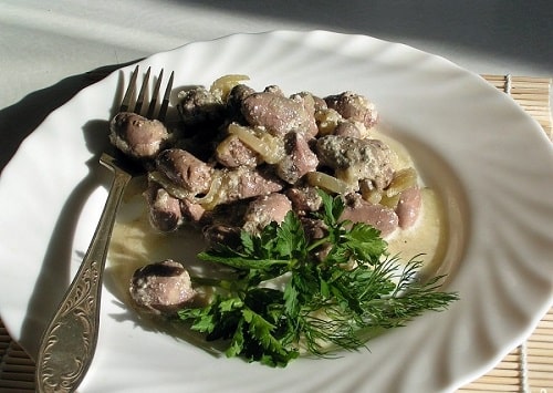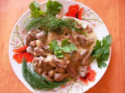 Сердечка індички, тушковані в сметані