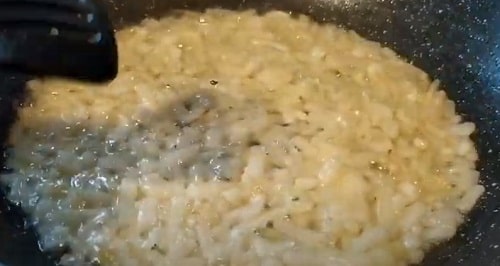 - Влийте тонким струменем бульйон, розмішуйте, щоб не утворилося грудочок.