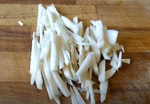 Порубати соломкою зубки часнику.