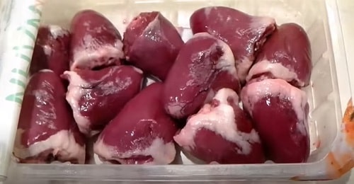 - Зріжте судини, зайвий жир з сердечок, надріжте, видаліть згустки крові. Гарненько промийте, підсушіть паперовою серветкою.