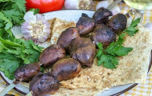 Шашлик з сердечок індички на мангалі