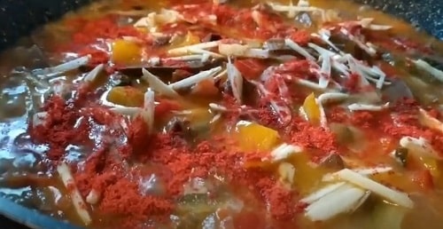 - Через кілька хвилин інтенсивної смаження додайте порізаний великими кубиками болгарський перець.