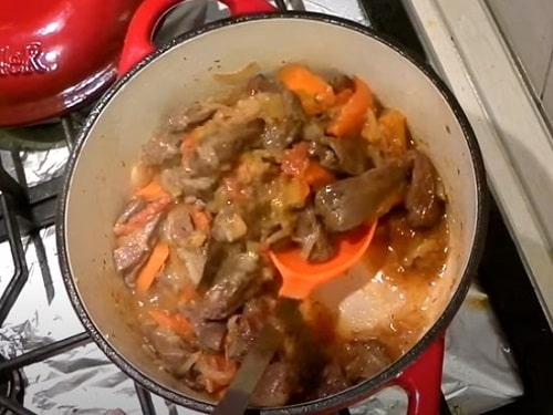 Після цього зменшіть потужність вогню. Накрийте м'ясо кришкою, тушкуйте приблизно 20 хвилин.