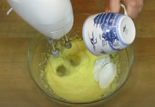 Перекладіть в миску сметану. Продовжуйте працювати міксером ще пару хвилин.