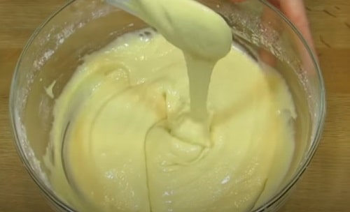 Ось таке тісто має вийти – стекающее з ложки суцільною стрічкою.