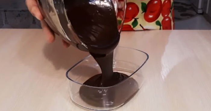4. Продукти ретельно розмішуємо, щоб вийшла однорідна маса красивого шоколадного кольору, потім перекладемо отриманий продукт у пластиковий контейнер, накриємо і приберемо в холодильник на кілька годин.
