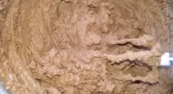 2. Потім збиваємо суміш електричним віночком до тих пір, поки не вийде густа ароматна маса, від якої починає відходити сироватка.
