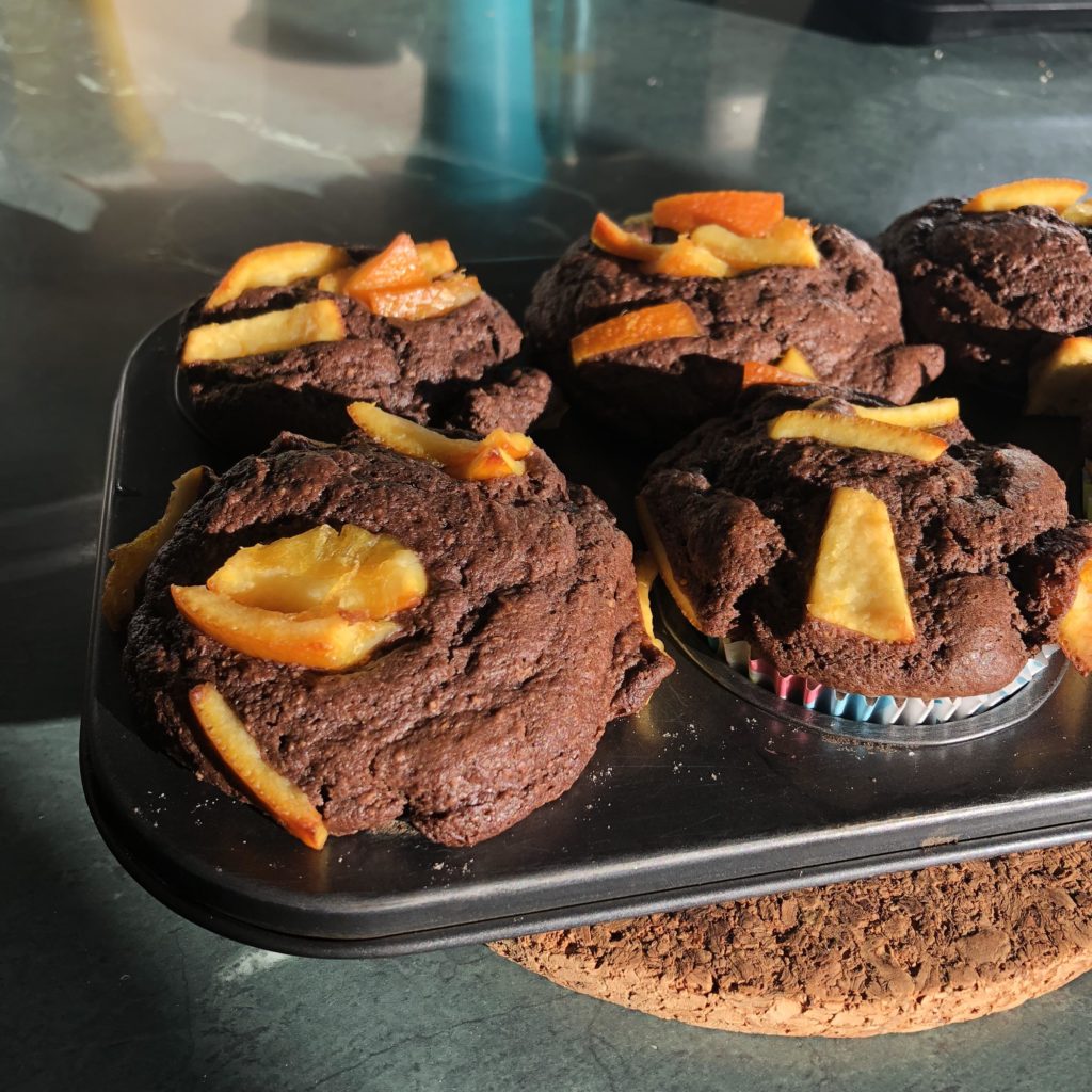 Один з популярних способів урізноманітнити класичні маффіни з какао – додати до них шматочки цукатів. Відмітна особливість рецепта – відсутність вершкового масла (використовується його рослинний аналог).