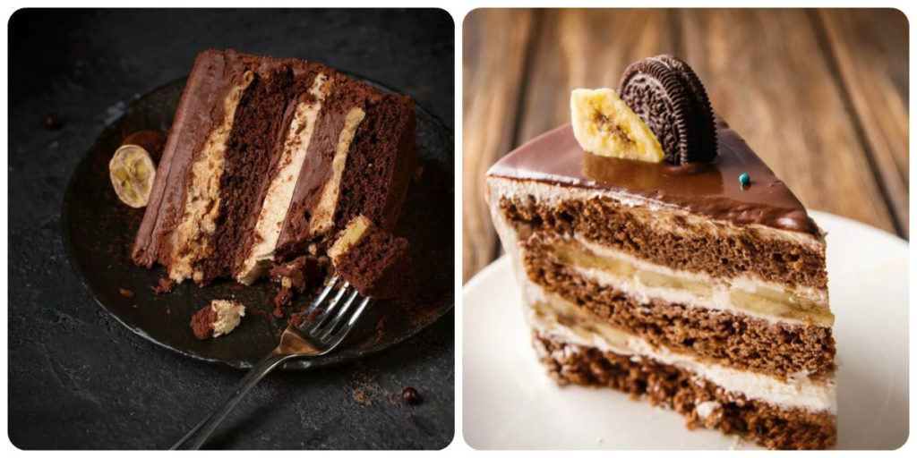 Апетитний і презентабельний десерт за смаком нагадує тістечко Брауні з вологою шоколадною основою, просоченої ніжними шарами сметанно-вершкового крему з шматочками бананів.