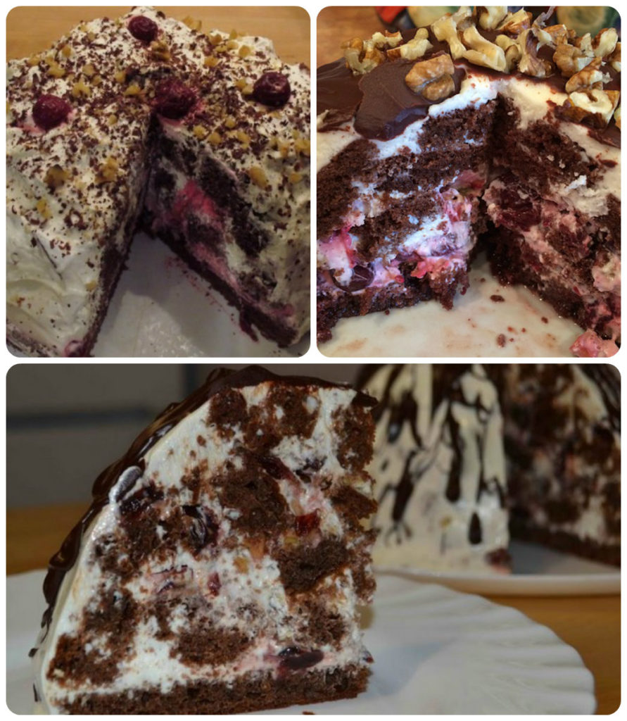Шоколадний торт зі сметанним кремом можна готувати на медової, бісквітної або будь-який інший основі. Різноманіть смак десерту можна консервованої вишнею, солодким родзинками, горішками або згущеним молоком.