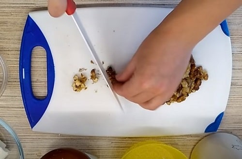 - Розсипте заздалегідь запарений родзинки, роздроблені горіхи.