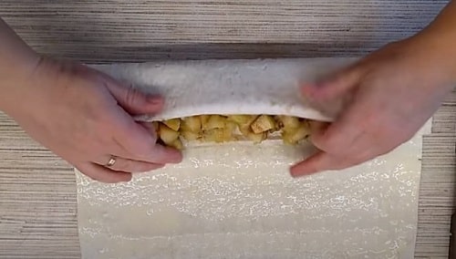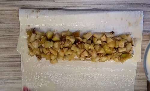 Штрудель з лаваша з яблуками і сиром та родзинками в духовці