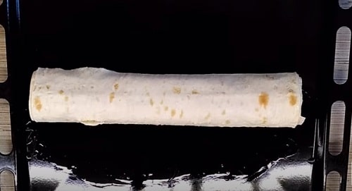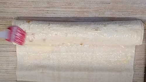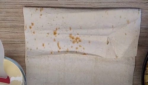 - Поверніть лаваш рулетом, підвернувши краю коржі всередину.