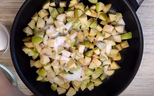 - В процесі заправте цукром і корицею. Для солодких яблук кладіть цукру помірно.