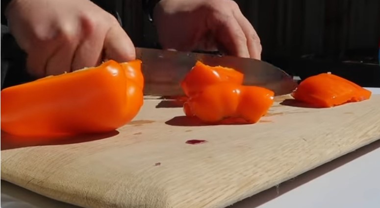 4. Перець очищається від насіннєвої серцевини і рідше на великі частини.