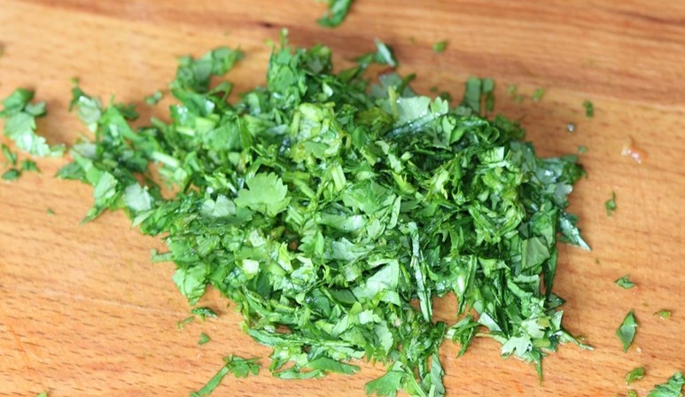 8. В готову страву додається дрібно нарізана зелень і подається на стіл.