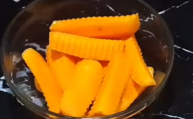 3. Моркву нарізати вздовж на 3-4 частини, залежно від її довжини.