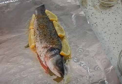 Фольга збереже всі соки сибаса, зробить його м'ясо ще ніжніше. Лимон в запіканні риби застосовується дуже часто, і це цілком виправдано, смак м'яса помітно поліпшується.