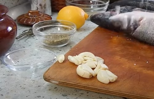 - Почистіть рибину від луски і нутрощів, зріжте плавники, хвіст, видаліть з голови зябра, щоб страва не гірчило. Ретельно обполосніть тушку, підсушіть серветкою.