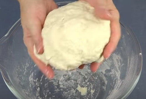 Потім, коли розмішувати ложкою стане важко, почніть працювати руками. Замісіть тісто, скачайте його в кулю. Сховайте ком в пакет, помістіть на полицю холодильника на 40 хвилин.