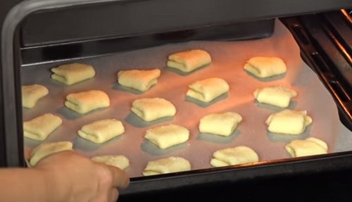 - Укладіть трикутники на деко, підстеливши пекарську папір, промазану маслом.