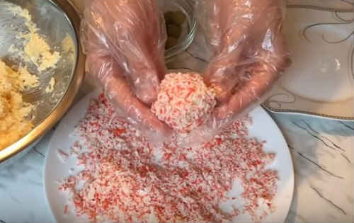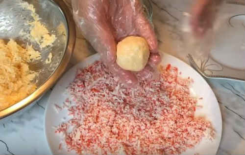 - Скачайте кульки, як описано в покроковому рецепті, умочіть в крабову крихту.